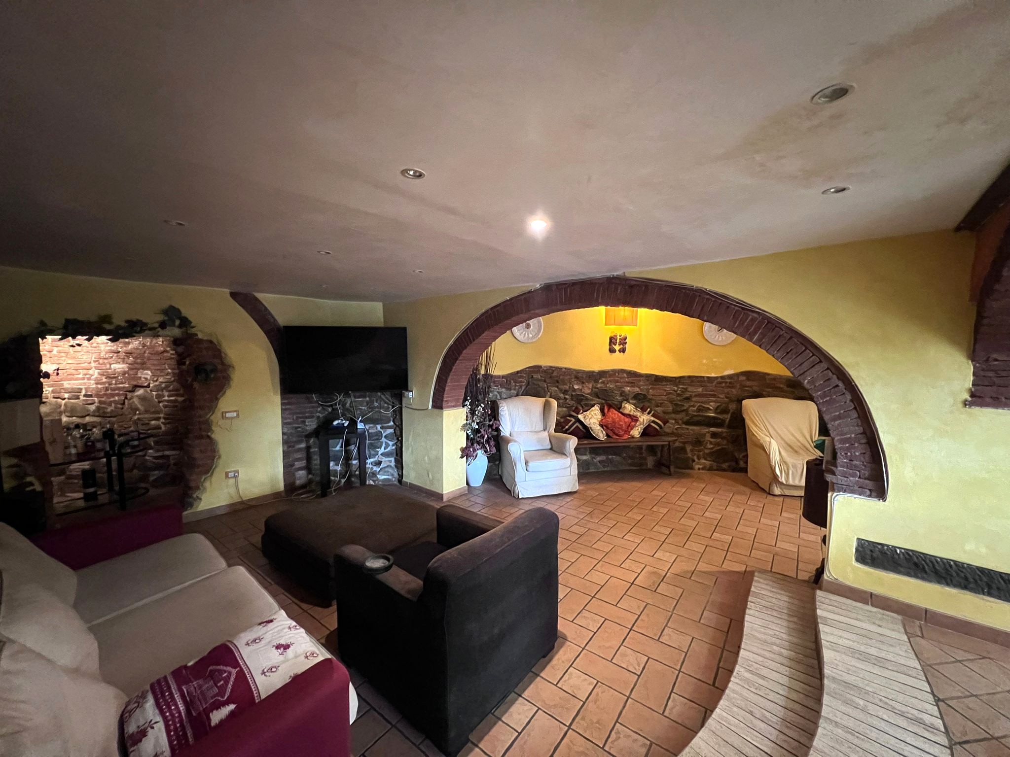 Al piano terra troviamo una zona giorno di oltre 50mq composta da una sala dotata di camino e cucina a vista; completa la proprietà al piano un bagno ed un locale di sgombero destinato ad ufficio.