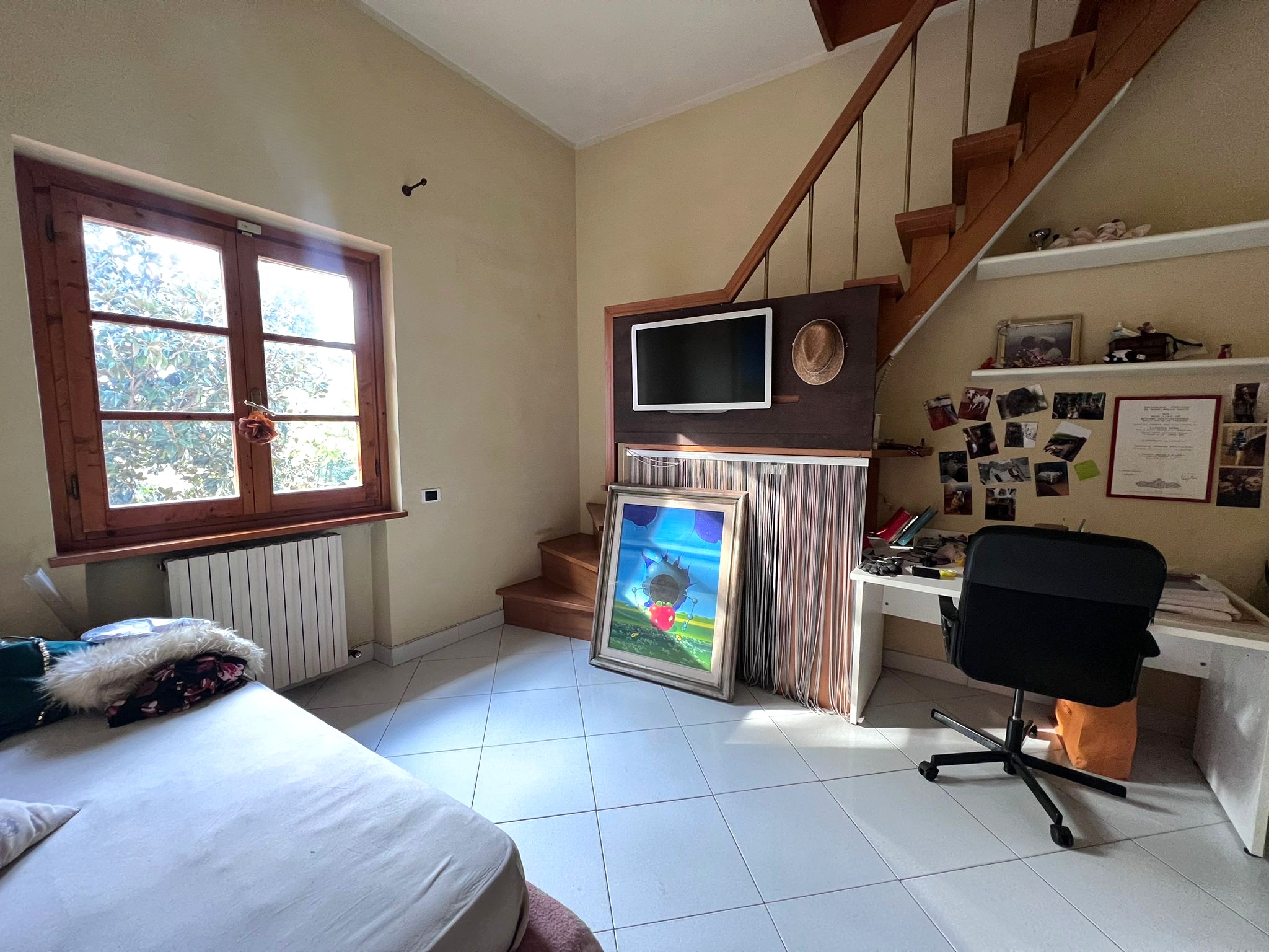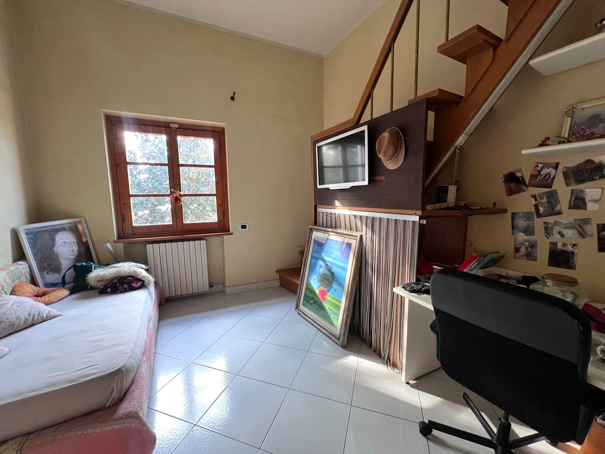 Da una rampa di scale arriviamo alla zona notte dove troviamo due camere matrimoniali, una delle quali dotata di un balcone di 15mq, una camera singola con soppalco ed un bagno finestrato.