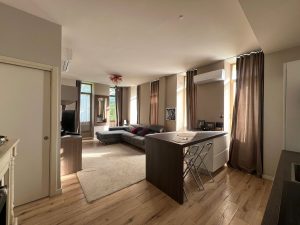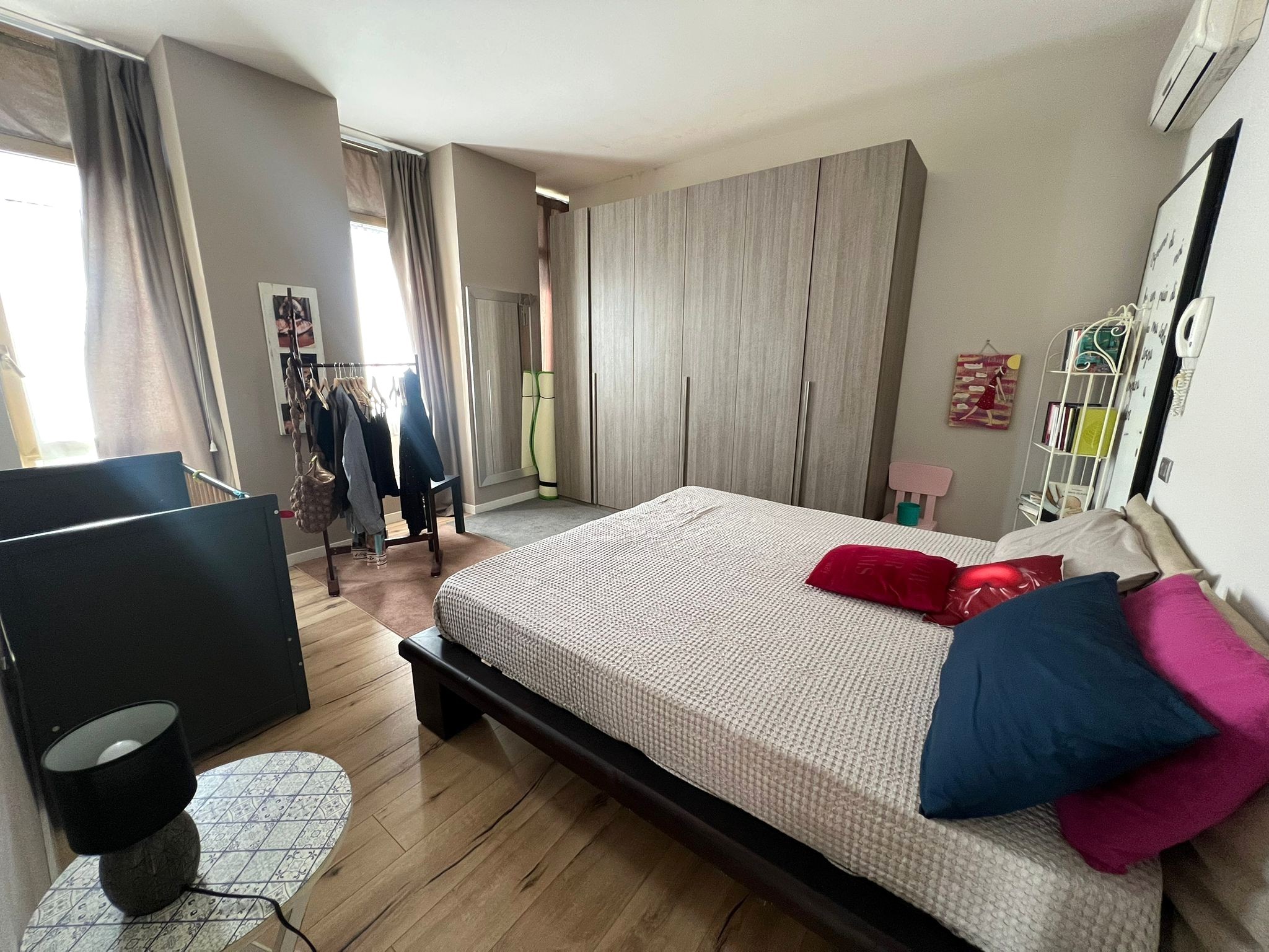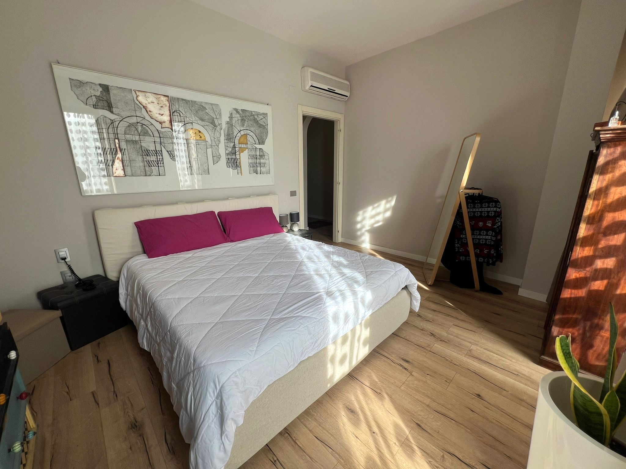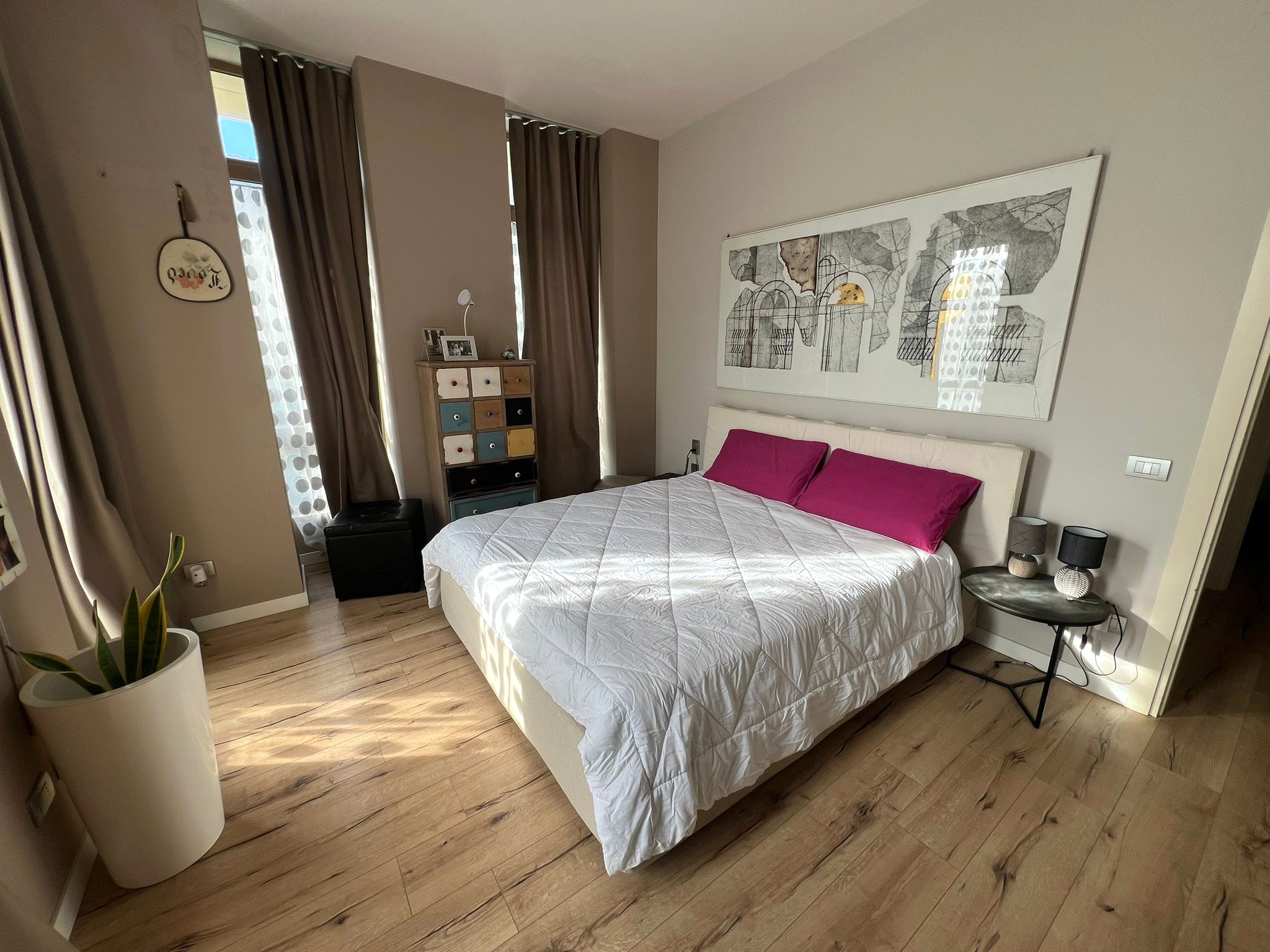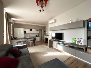 Entrando, troviamo un’ampia e moderna zona giorno composta da una cucina a vista e da una sala con divano angolare e parete attrezzata; completa l’ambiente un bagno finestrato dotato di anti bagno.
