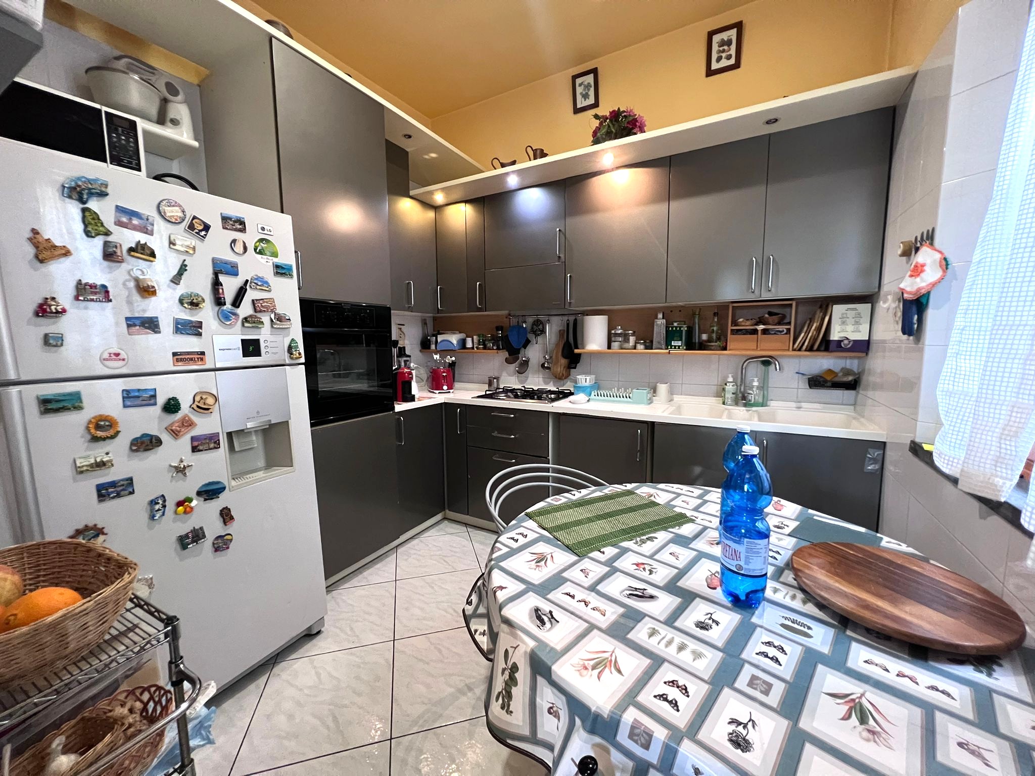 Entrando nell’abitazione troviamo un’ampia e luminosa zona giorno di circa 40mq arricchita da ben tre punti luce, una cucina con angolo cottura ed un bagno cieco. Dalla cucina accediamo alla cantina al piano seminterrato.